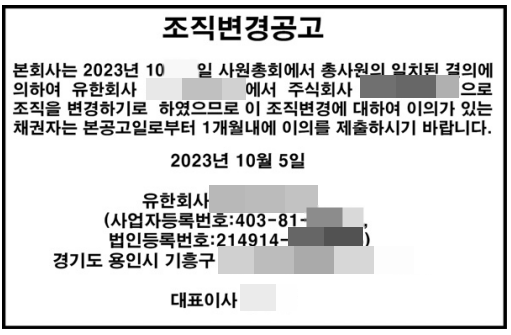 조직변경공고 합리적인 비용 및 절차 -전국일간지 대행/편집